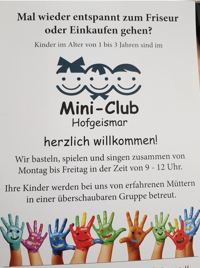 "Unser Sohn ist vom 1. Tag an gerne in den Miniclub gegangen. Hier trifft man auf sehr nette Erzieherinnen, die viel mit den KIndern unternehmen. Besuche in der Stadtbücherei, Spielplatz oder in der Fußgängerzone, sowie die vielen schönen Bastelaktionen gehören dazu. Der Miniclub ist eine gute Vorstufe zum Kindergarten!"
